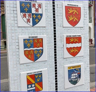 Picardie-Normandie: borne symbolique armoriée, limite régionale et départementale entre Le Tréport et Mers-les-Bains. Courrier Picard du 31 octobre 2020, détail d'une photo.(Aimablement transmis par Jacques Dulphy)