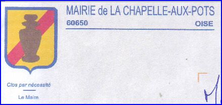 D'or à la barre de gueules, à la poterie de tenné brochant sur le tout; à la filière d'azur.