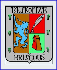 (1993) Parti: au 1er d'or au lion d'azur, au 2e coupé au I de gueules à l'encrier d'argent chargé d'une plume d'oie du même posée en barre et au II de sinople à la tour de salines d'or, la façade de gueules; le tout enfermé dans une bordure d'argent chargée de six gerbes d'ajoncs de sinople, trois à chaque flanc.