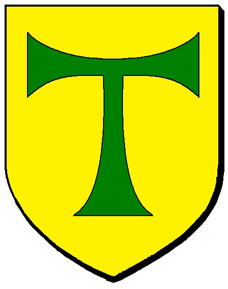 Tiercé en bande: au 1er d'or au tau de sinople, au 2e de gueules à la bande d'or et à trois cloches d'argent rangées en bande et brochantes, au 3e de sinople à trois pals d'or.