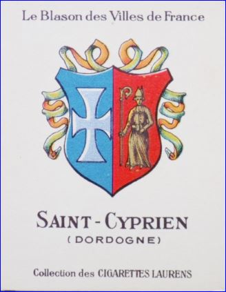 Parti: au 1er de gueules à la croix pattée et alésée d'or, au 2e d'azur à l'abbé tenant dans sa dextre une crosse contournée d'argent.