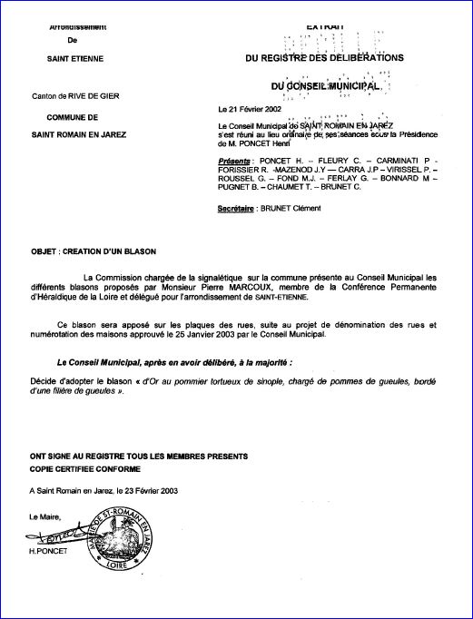 Extrait du registre des délibérations du Conseil Municipal du 21 février 2002.