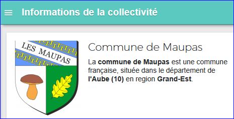 Parti: au 1er d'argent au cèpe de tenné, le pied et les pores d'orangé, au 2e de sinople à la feuille de chêne d'or posée en barre; le tout sommé d'un chef d'azur à la bande d'argent chargée de l'inscription « LES MAUPAS » en lettres capitales de sable, et côtoyée de deux jumelles d'or potencées contre-potencées intérieurement.