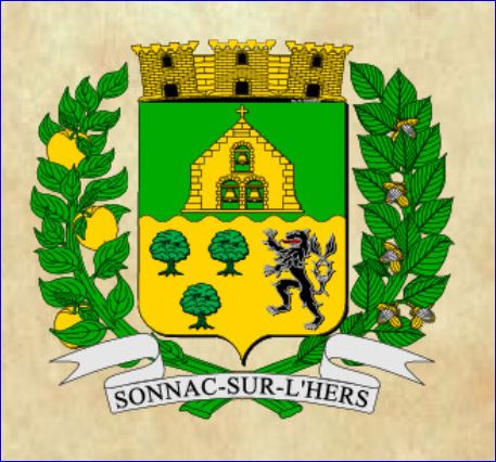 (2025) Coupé ondé: au 1er de sinople au campanile du clocher du lieu d'or, au 2e d'or à trois arbres arrachés de sinople, 2 et 1, à dextre et au lion de sable, armé et lampassé de gueules, la queue nouée et passée en sautoir, à senestre.