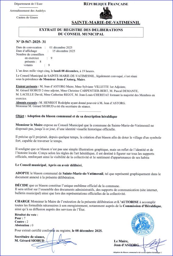 Extrait du registre des délibérations du Conseil Municipal du 15 décembre 2025 (2/2).