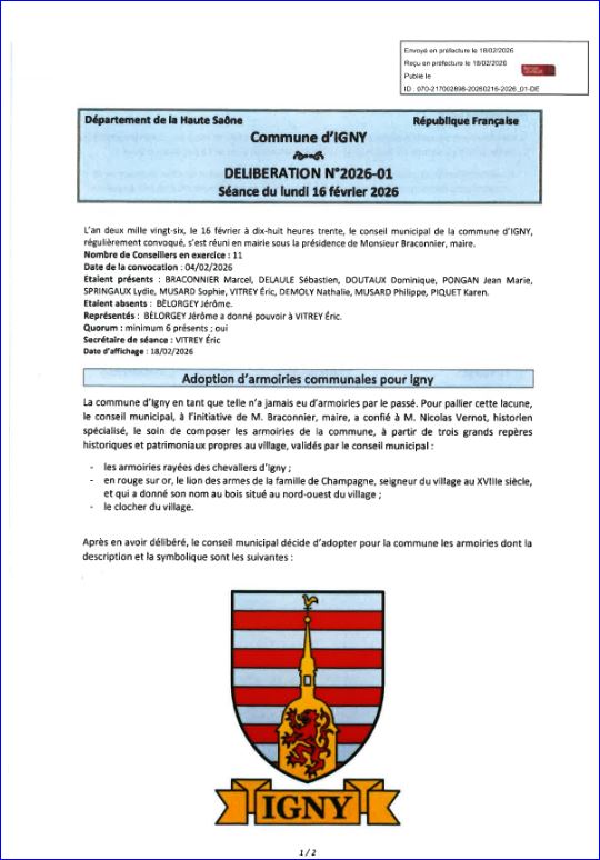 Extrait du compte-rendu du Conseil Municipal du 16 février 2026 (1/2).