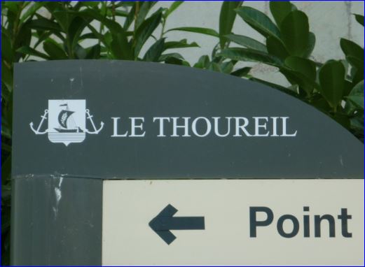 D'argent à la gabare d'azur, la voile chargée d'une feuille d'acacia d'or et voguant sur une rivière du champ mouvant de la pointe.