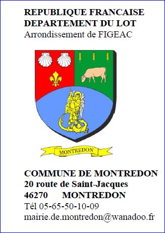Coupé voûté: au 1er parti au I de gueules à deux coquilles d'argent en chef et une fleur de lis d'or en pointe, au II de sinople à la vache paissant au naturel, accolée et clarinée d'azur et surmontée de trois épis de blé d'or rangés en chef, au 2e d'azur à l'archange Michel d'or, ailé d'argent, transperçant un dragon couché et contourné d'or.