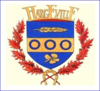 D'azur à la fasce d'or chargée de trois annelets du champ et accompagnée en chef d'un épi de blé couché et contourné d'or et en pointe d'un trèfle à quatre feuilles du même.
